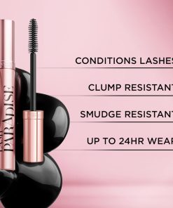 Take your lashes to paradise. Our 1st mascara for voluptuous volume & length. Soft wavy bristle brush holds maximum formula for a dramatic volumizing charge. 200plus bristles catch every lash for a full fringe effect. Waterproof smooth glide formula provides silky volume in 1 coat. Lashes are feathery soft to the touch. Women agreed: 3 of 4 women saw volume and length, 90% said it doesn’t flake, 95% said it lasts all day.