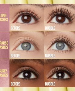 Colossal Bubble mascara delivers buildable inflated volume with sleek separation. This long-lasting mascara has breakthrough bubble technology that features an inflator comb brush and lash inflating formula. The brush is spiral-shaped with deep-cut bristles for a separated, sleek look that lasts. Plus, its formula inflates every lash for a bubble-like look and feel. It has been ophthalmologist tested and is suitable for contact lens wearers.